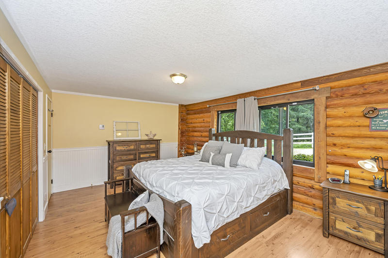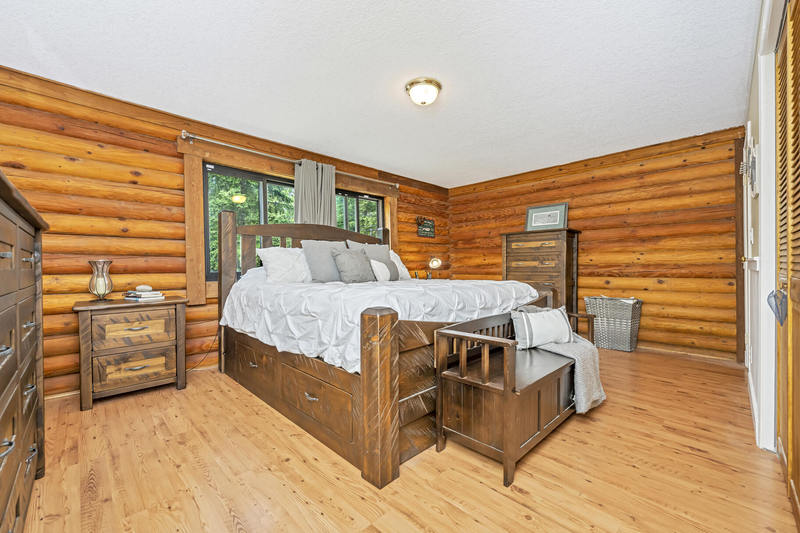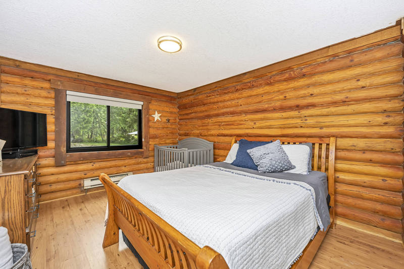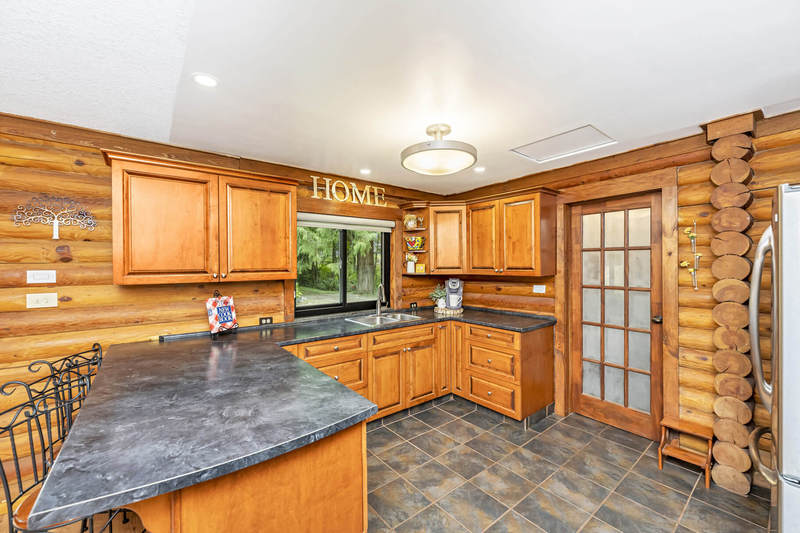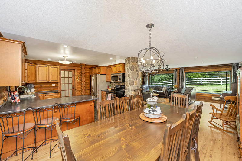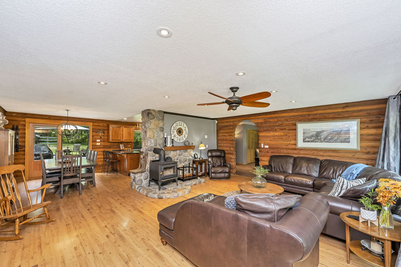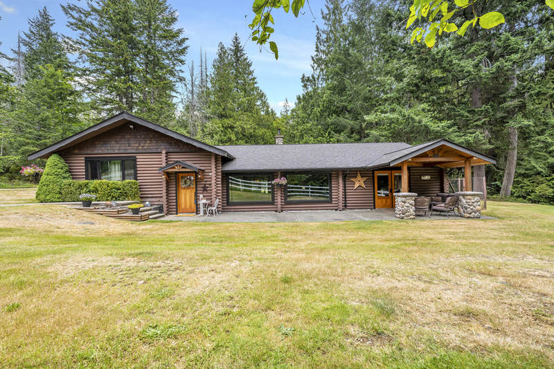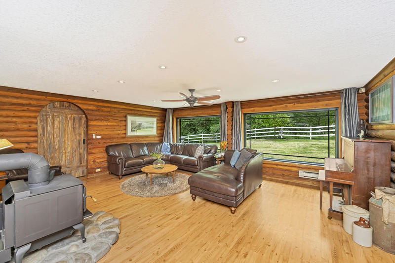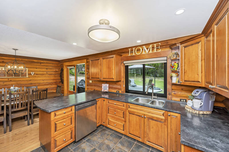If you are looking for privacy & a move-in ready home where all the hard work is done, then look at this beautiful log home today. Offering 2204 SF with 3 bedrooms & 2.5 bathrooms with only 5 steps separating the main living & bedrooms, this home is truly a charmer. You will love the updated kitchen & bathrooms featuring cherry stained, maple cabinetry, large living room with approved woodstove, separate family room where the whole family can gather for movie nights, easy care laminate floors in most of the home & updated lighting & décor throughout. The Anderson windows & exterior doors were installed in the past 3 years, roof is 8 years old, well log states 8 gpm, septic has been serviced regularly. There is a covered patio in the front yard & rear yard patio is ready for your hot tub. In addition, there is a 2 stall horse barn (currently used as a workshop) with lots of attached storage. The property is mostly treed with 2 paddocks & one boundary is up against parkland.